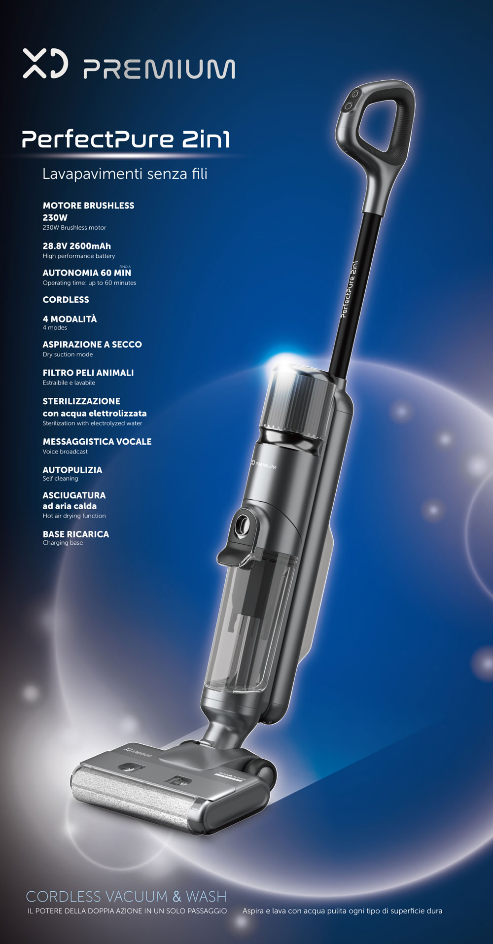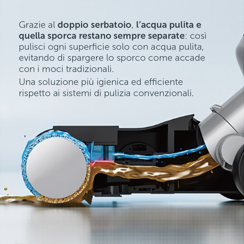 - Aspira e lava in un solo passaggio - Pulizia intelligente con tecnologia SmartPerfectPure - Efficienza senza fili - Igiene Garantita - Pronto all'uso - Design compatto, Potenza maxi - Modalità Isense - Self-cleaning & Hot air drying function AI - Filtro per animali